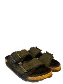 Birkenstock Arizona Shearling i sort ruskind. Foret med lammeskind. Anatomisk formet kork-latex-fodseng der ligeledes er betrukket med lammeskind. Vidde: Narrow Fit