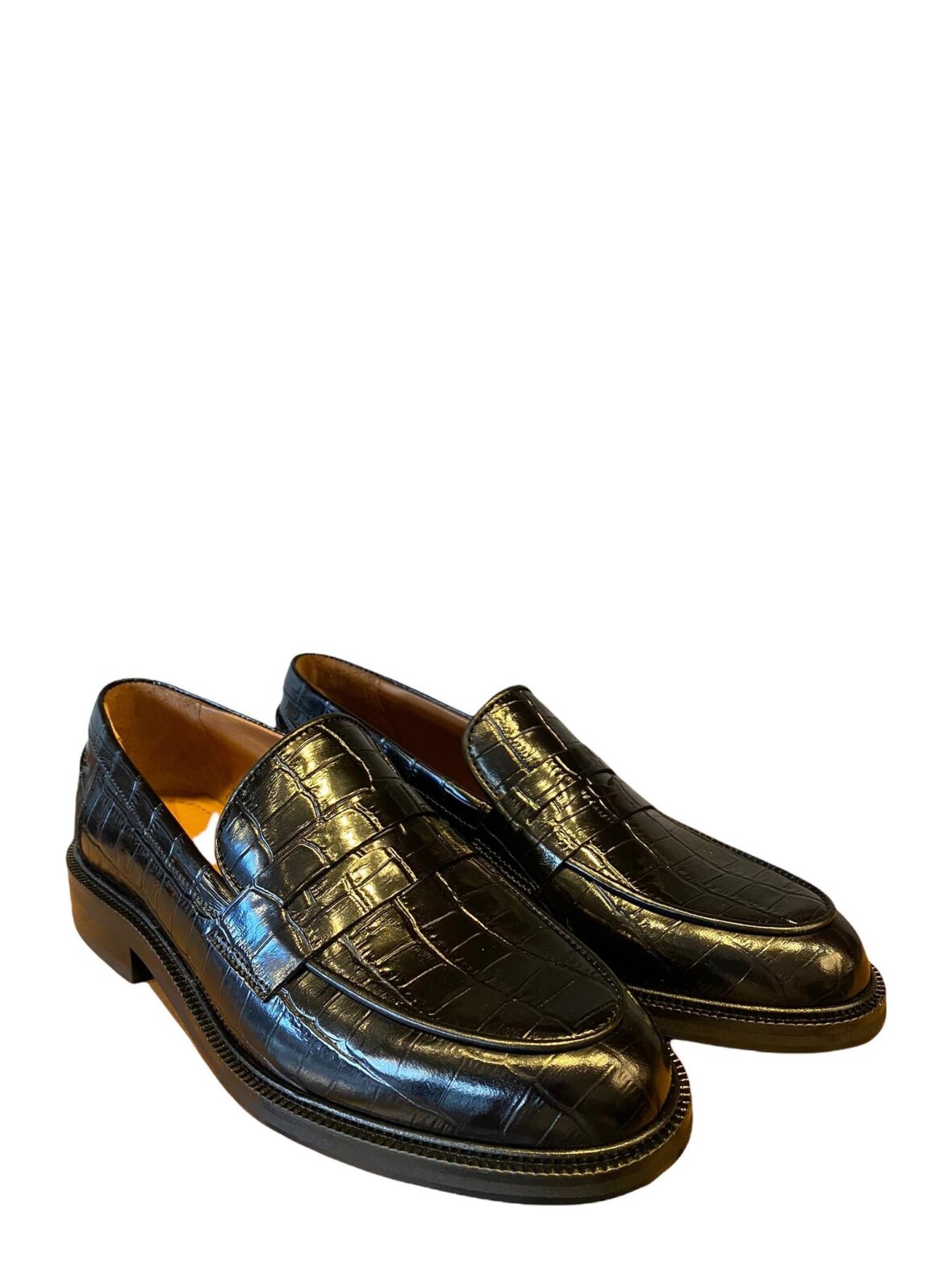 Loafers fra Billi Bi i sort croco præget skind. Foret med skind