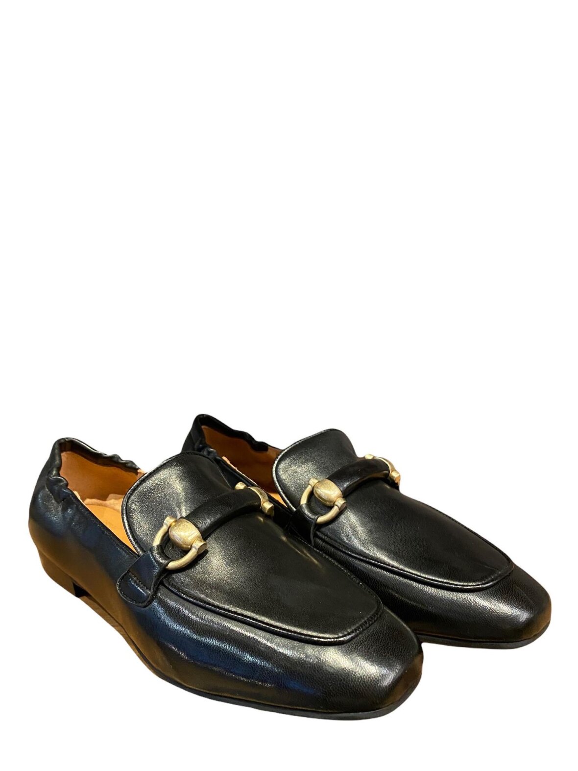 Loafers fra Billi Bi i sort blødt skind, foret med skind. Elastik ved hælen så skoen sidder godt fast. Dekorativt bidsel over forfoden