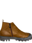 Kort damestøvle fra Lofina i camel farvet skind med en kraftig gummisål. Foret med skind, indvendig lynlås og elastik detalje bagtil. Den slidstærke sål gør den perfekt til både efterår- og vintervejr! Kan bruges til såvel buks som nederdel.