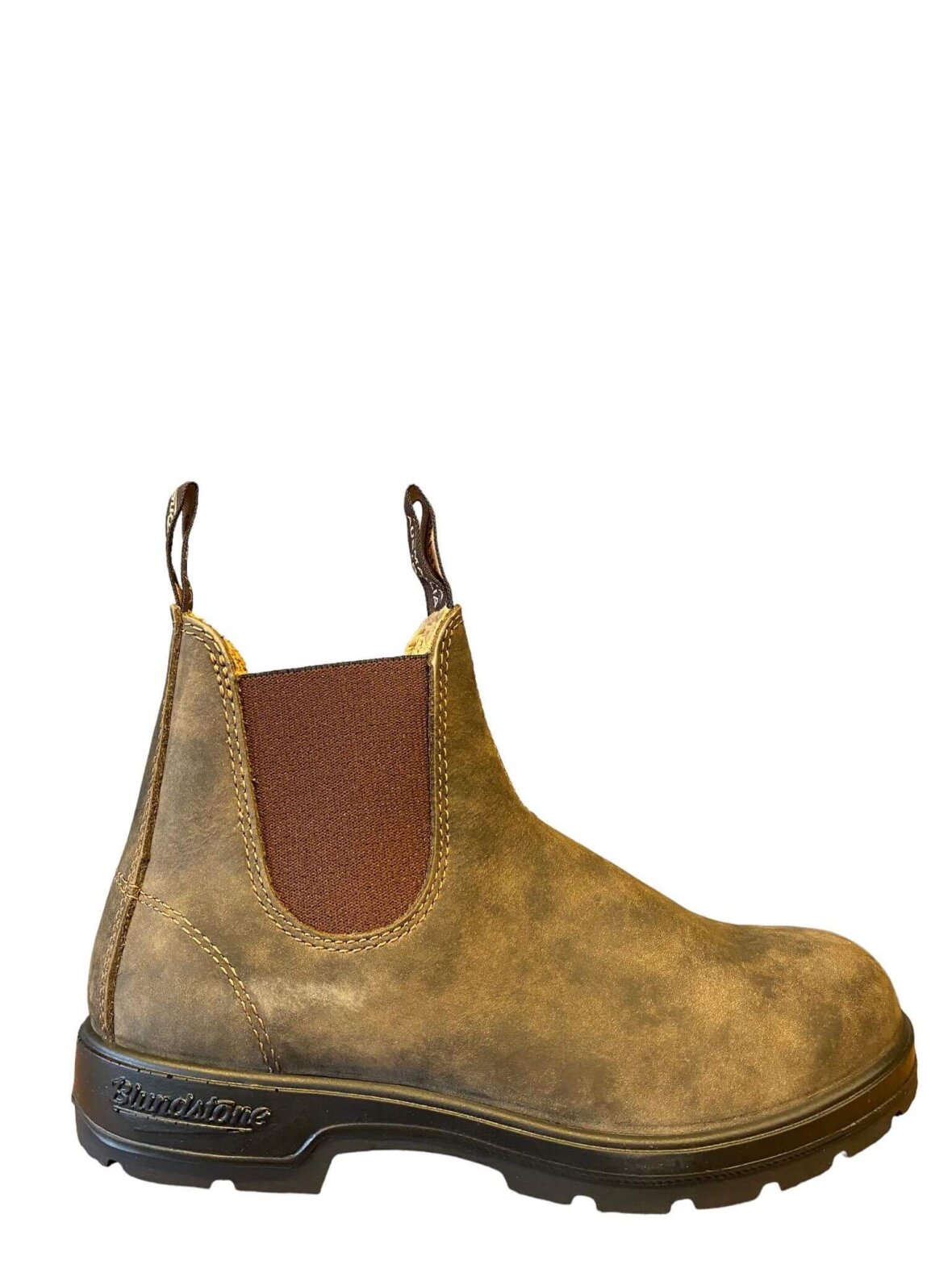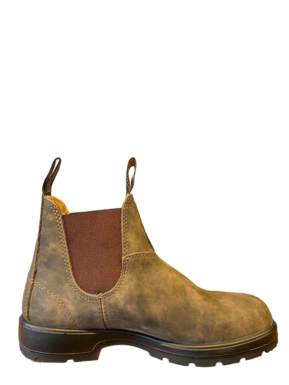 Lækker Chelsea boot fra Blundstone med rund tå i brunt/rustic brown nubuck. Kraftig sål der giver et solidt greb i alt vejr.