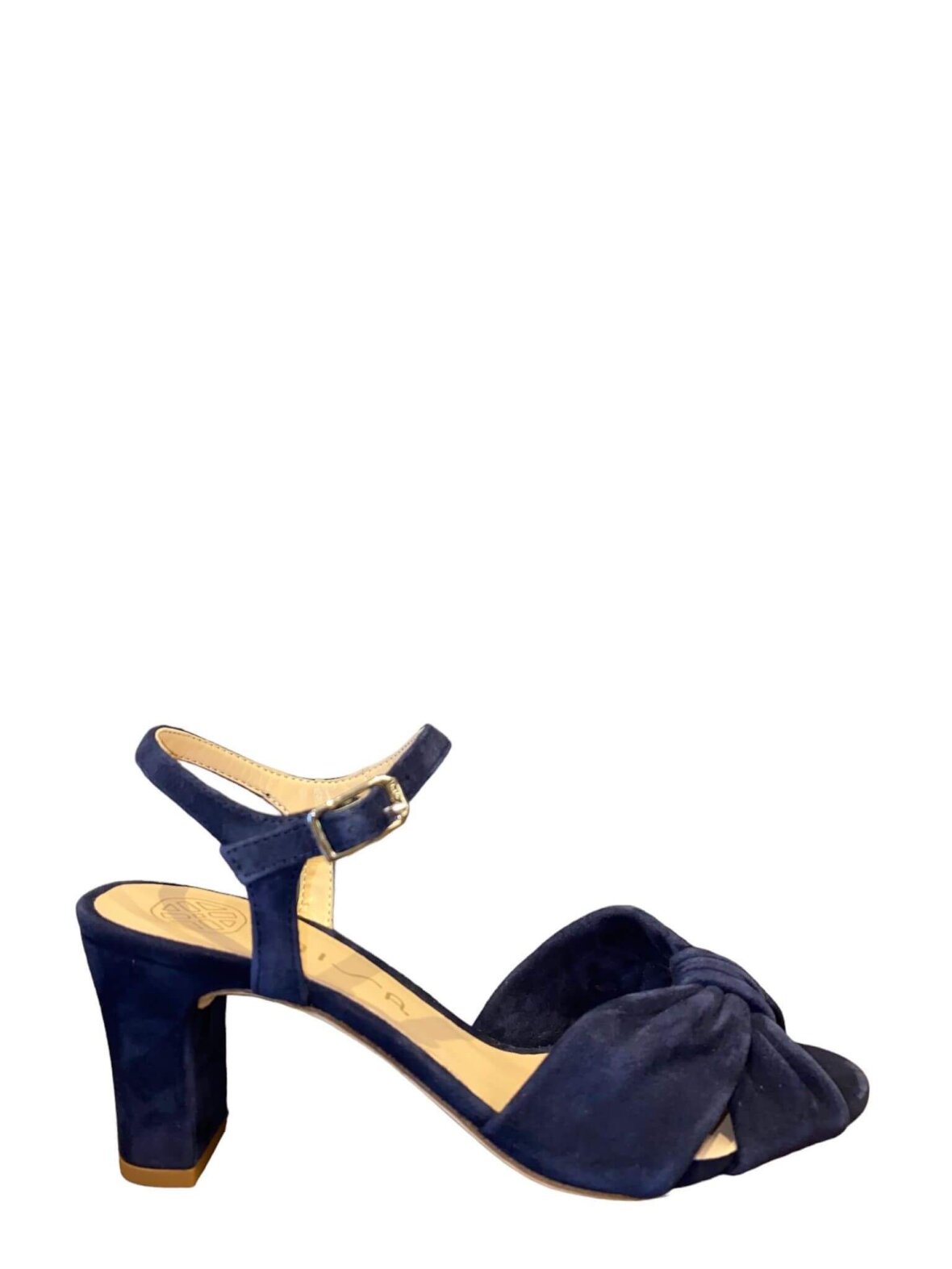 Smuk sandal fra UNISA i mørk blå ruskind, foret med skind. Lukkes med lille spænde ved anklen. Hælhøjde 7,5 cm