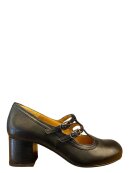 Sko fra AUDLEy i sort skind, foret med skind. Hælhøjde 5,5 cm. Lukkes ved 2 remme over vristen.