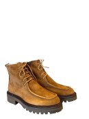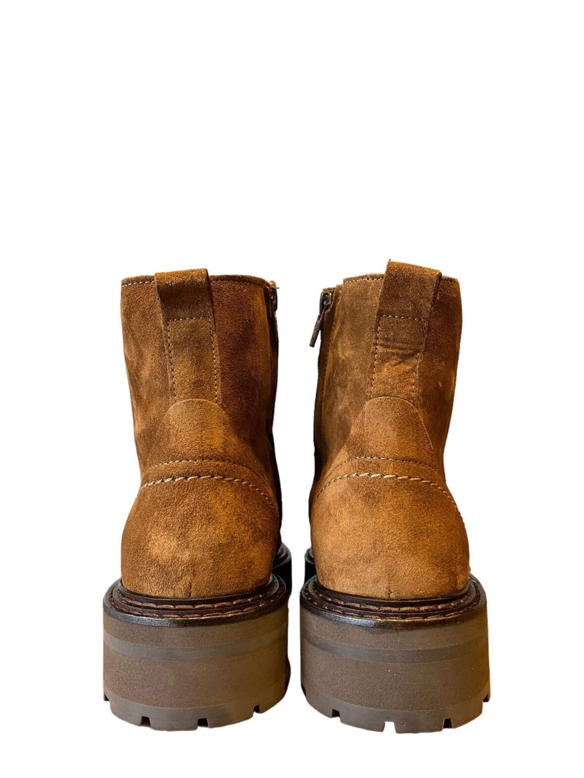 Smart kort støvle fra Billi Bi i tabac/brun ruskind, foret med uld. Lynlås på indersiden, samt snøre foran så den nemt kan tilpasse foden.