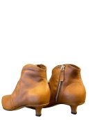 Kort støvle fra Pomme dór i det blødeste cognac farvet skind, foret med skind. Lynlås på indersiden. Den øverste kant har en fin runding med en udskæring foran. Hælhøjde 4,5 cm