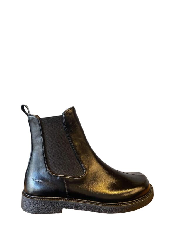 Chelsea boot fra angulus i sort skind, foret med skind. Rågummi sål. Bred læst.