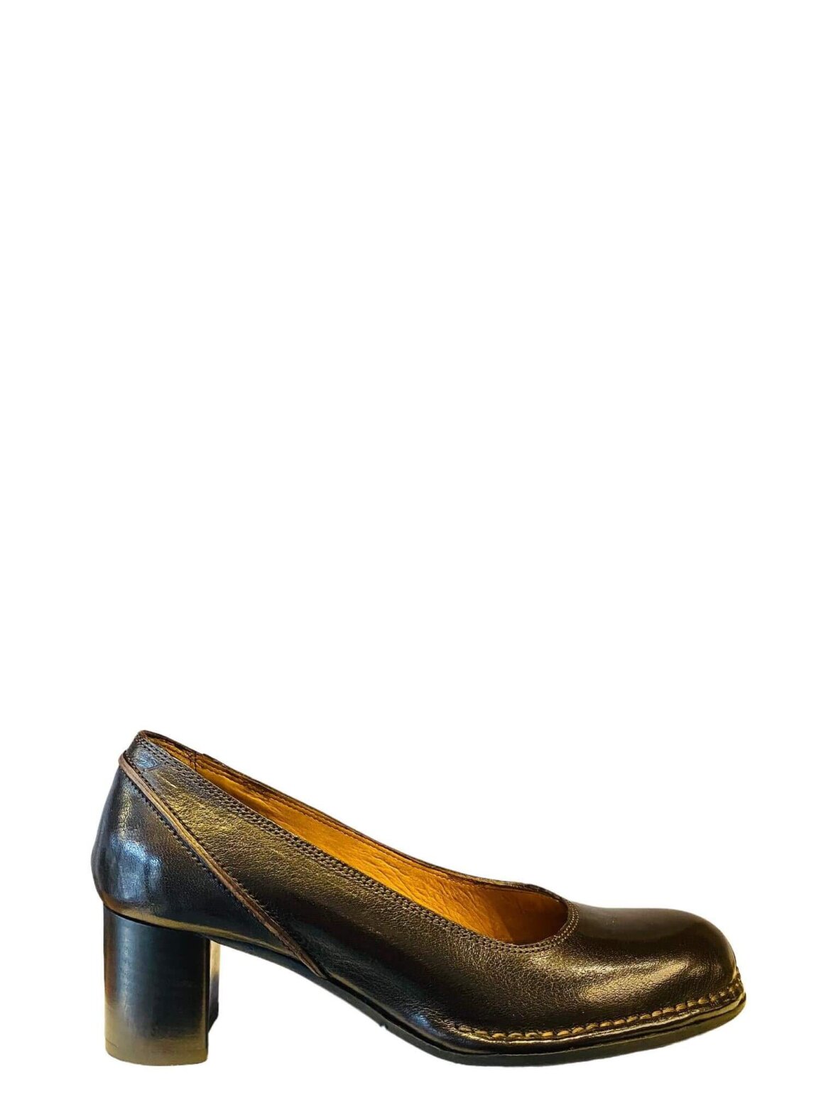 Smuk pumps fra Bubetti i mørk brun skind, foret med skind. Hælhøjde 5 cm