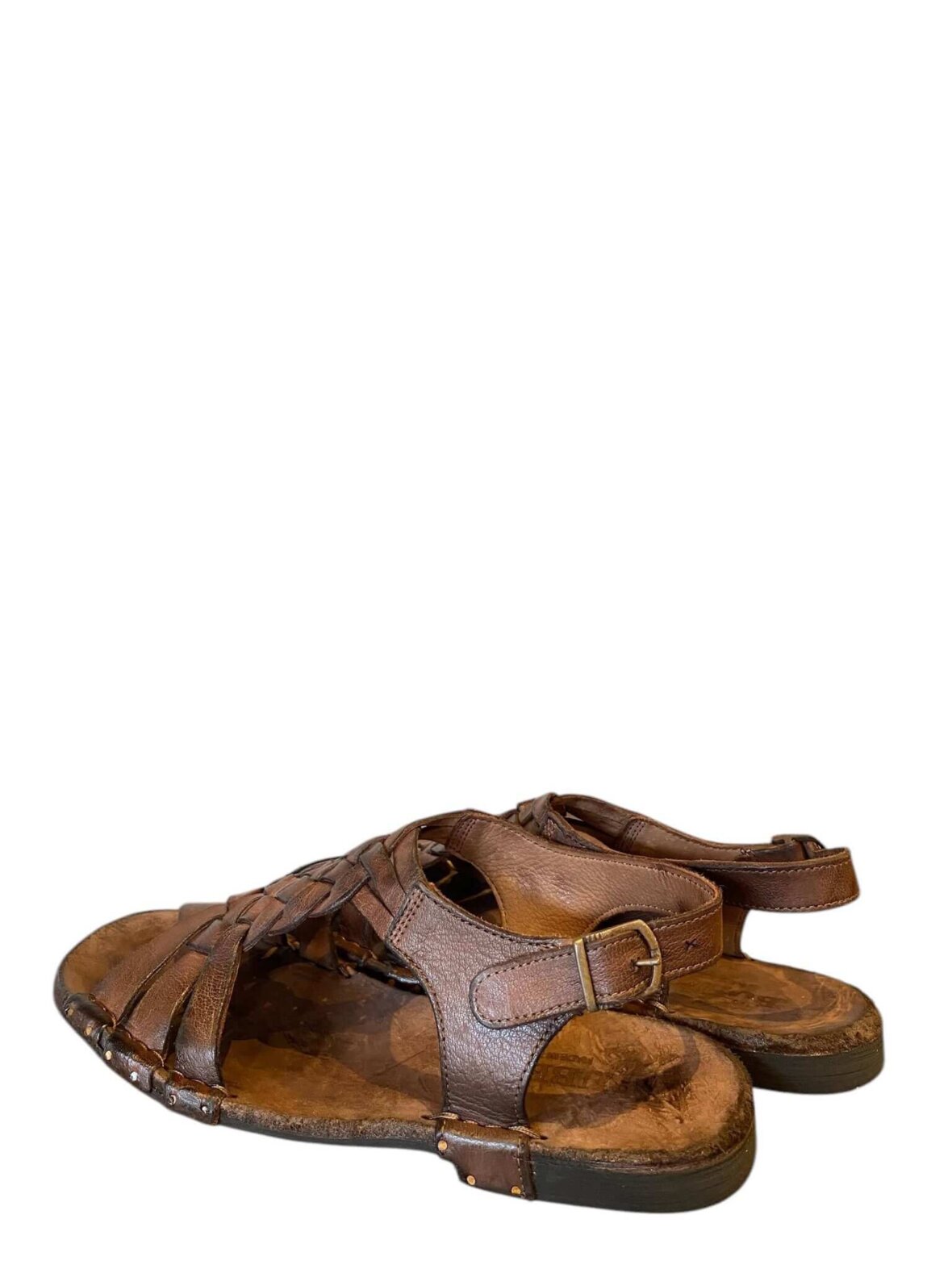 Flot Bubetti sandal i brunt vasket skind. Foret med skind. Krydsende remme og flet over forfoden.