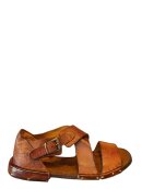Klassisk Bubetti sandal i cognac vasket skind. Foret med skind. Lukket hæl og lukkes med et spænde ved vristen.
