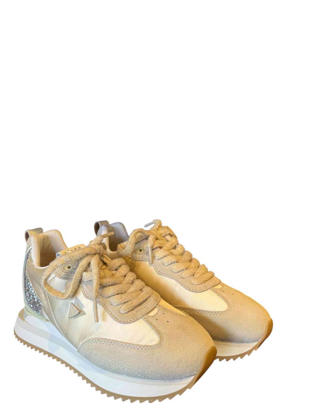 Super smart sneakers fra 0^105 - LENOX SWEET i blandede materialer, tekstil-ruskind - farve: SWEET / perle. Sølv glimmer på siderne. Aftagelig fodseng.