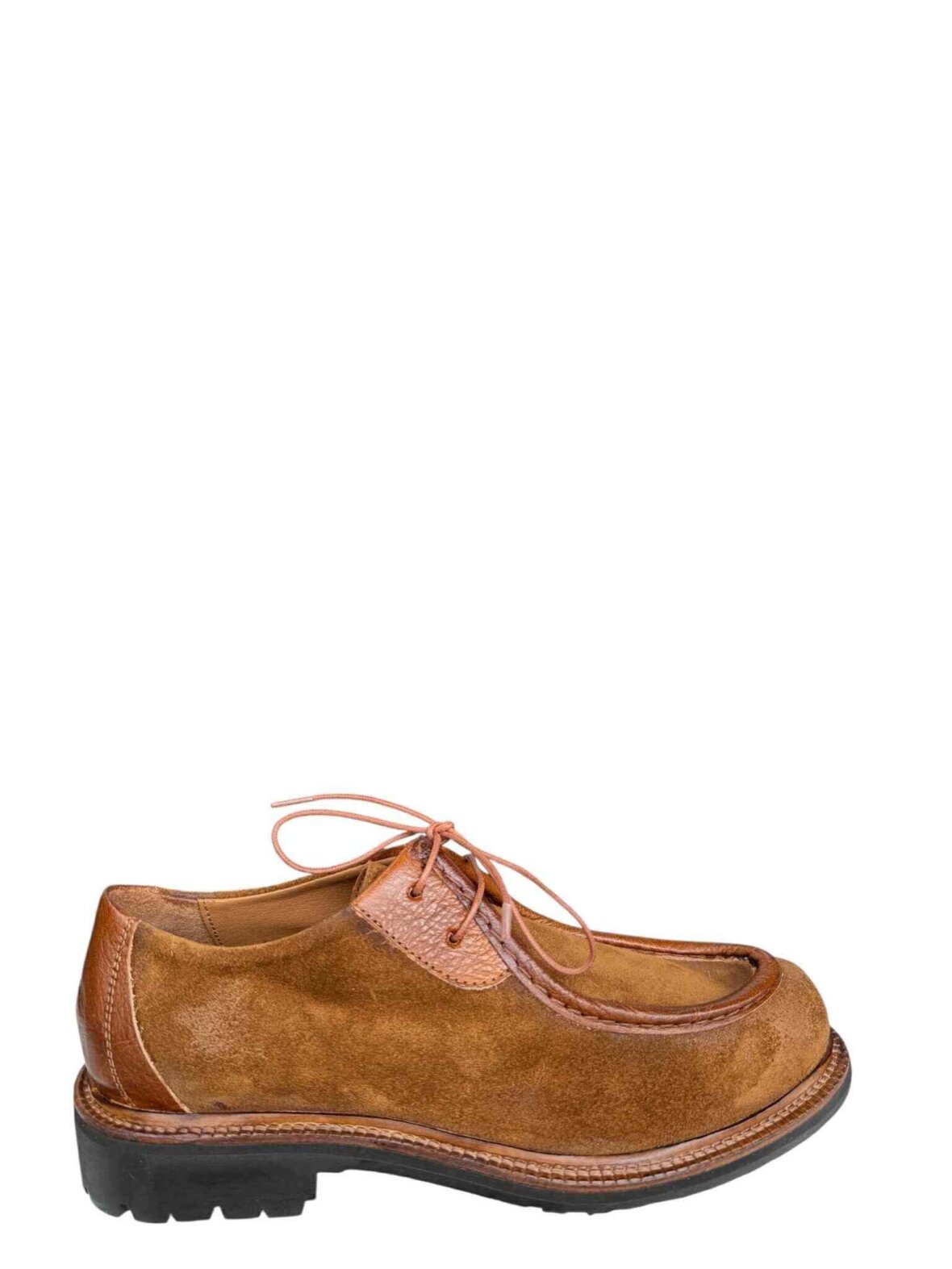 KING snøresko i brandy farvet ruskind med skind detaljer.