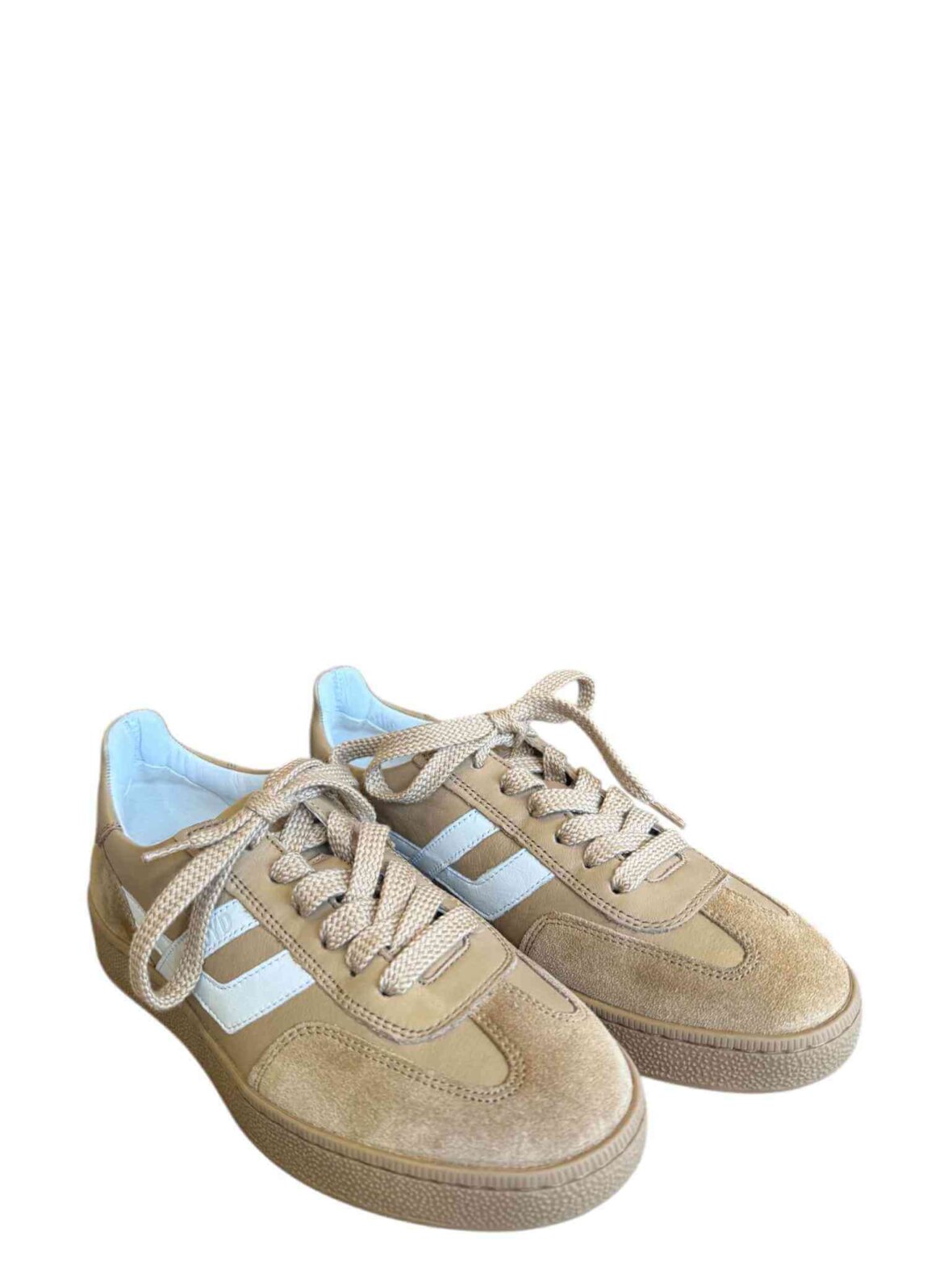 Sneaker fra Lloyd i beige skind og ruskind. Har hvide detaljer i på siderne i skind.