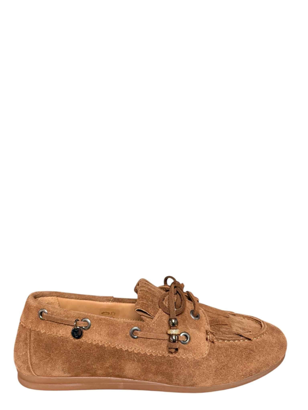 Moccasin fra Via Vai i cognac farvet ruskind, foret med skind.