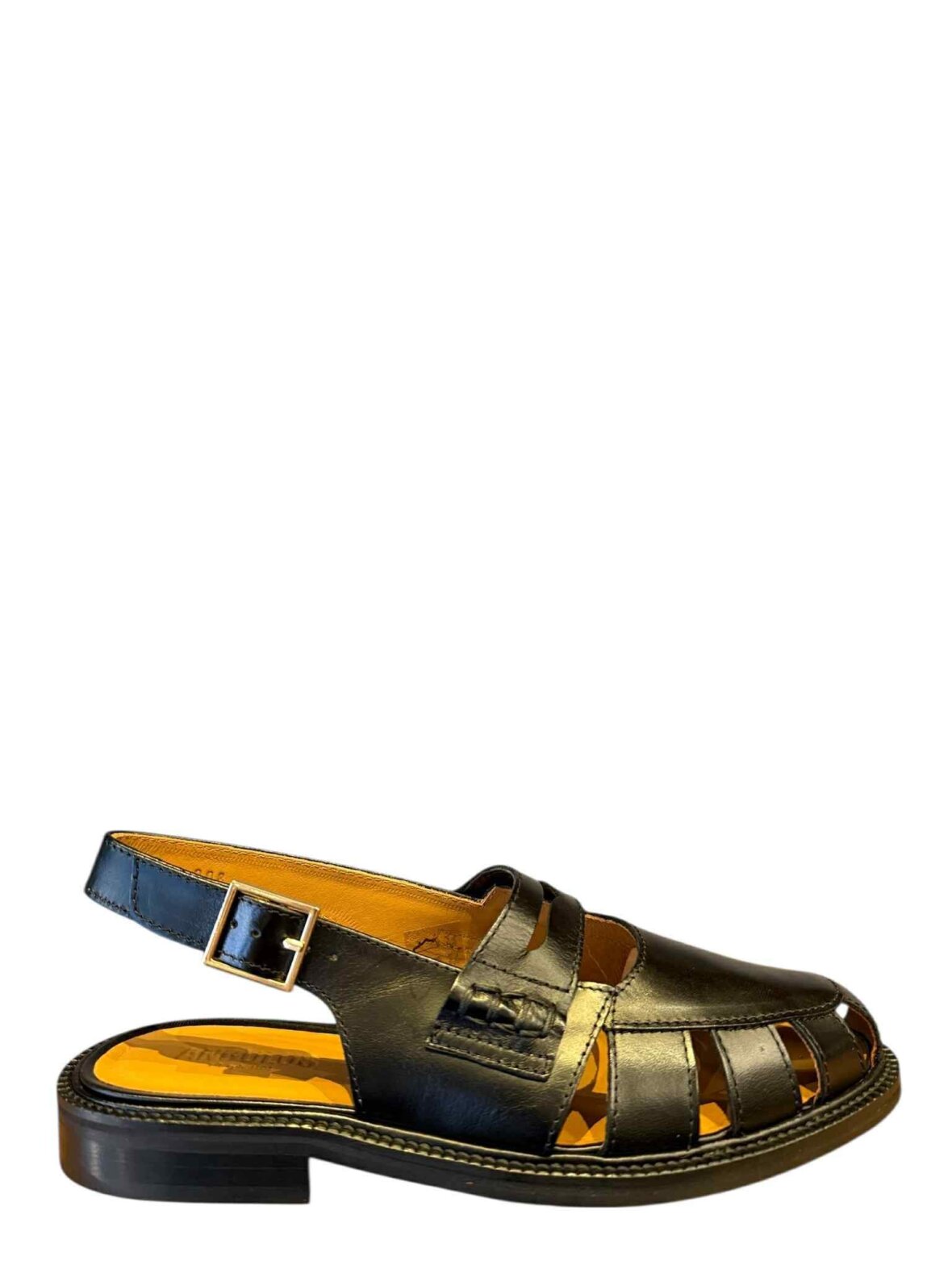 Flot sandal fra Angulus i sort skind, foret med skind. Hælremmen kan justeres.