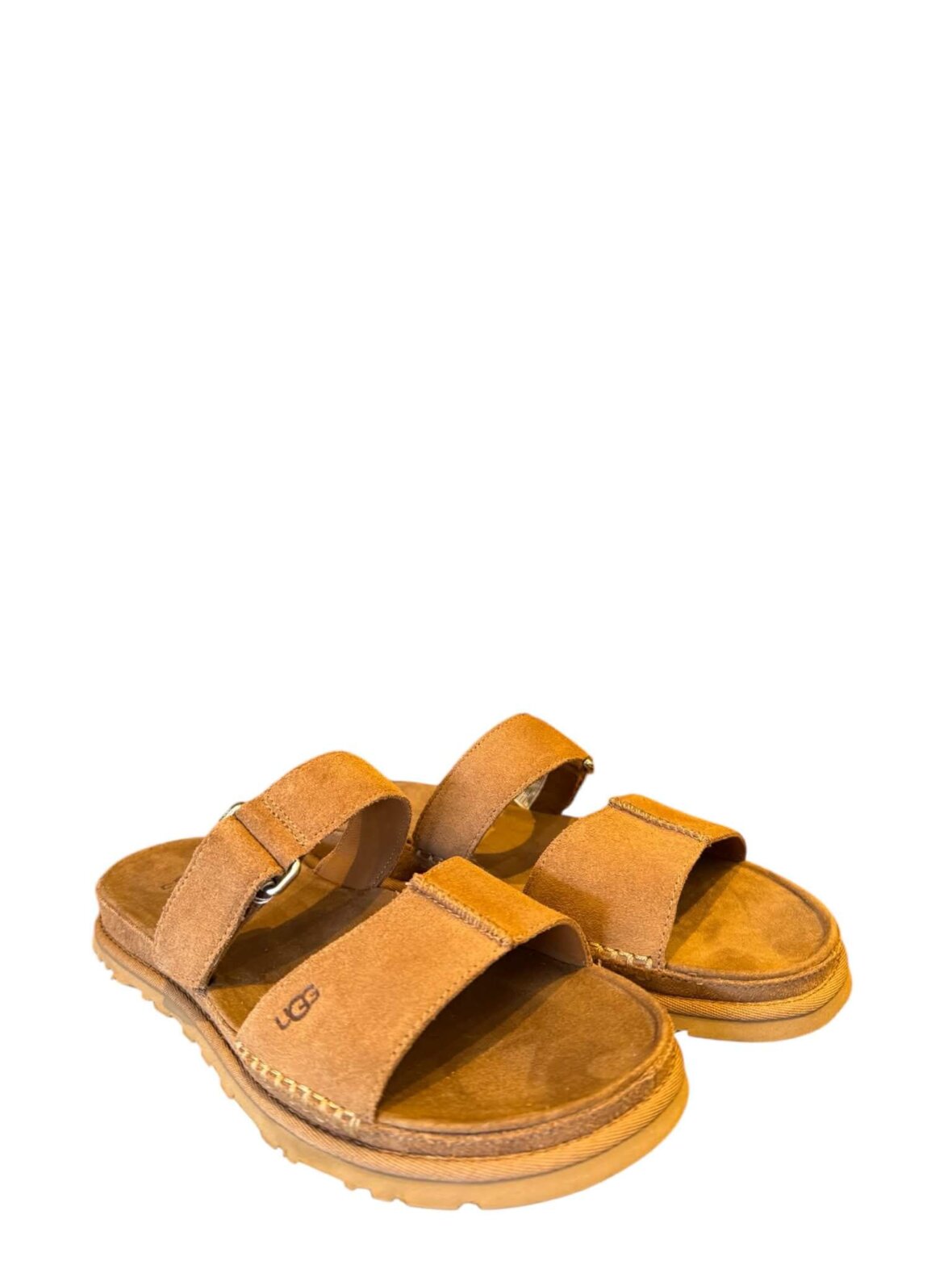 Sandal/tøffel fra UGG i chesnut farvet ruskind. Lukkes med velcro over vristen.