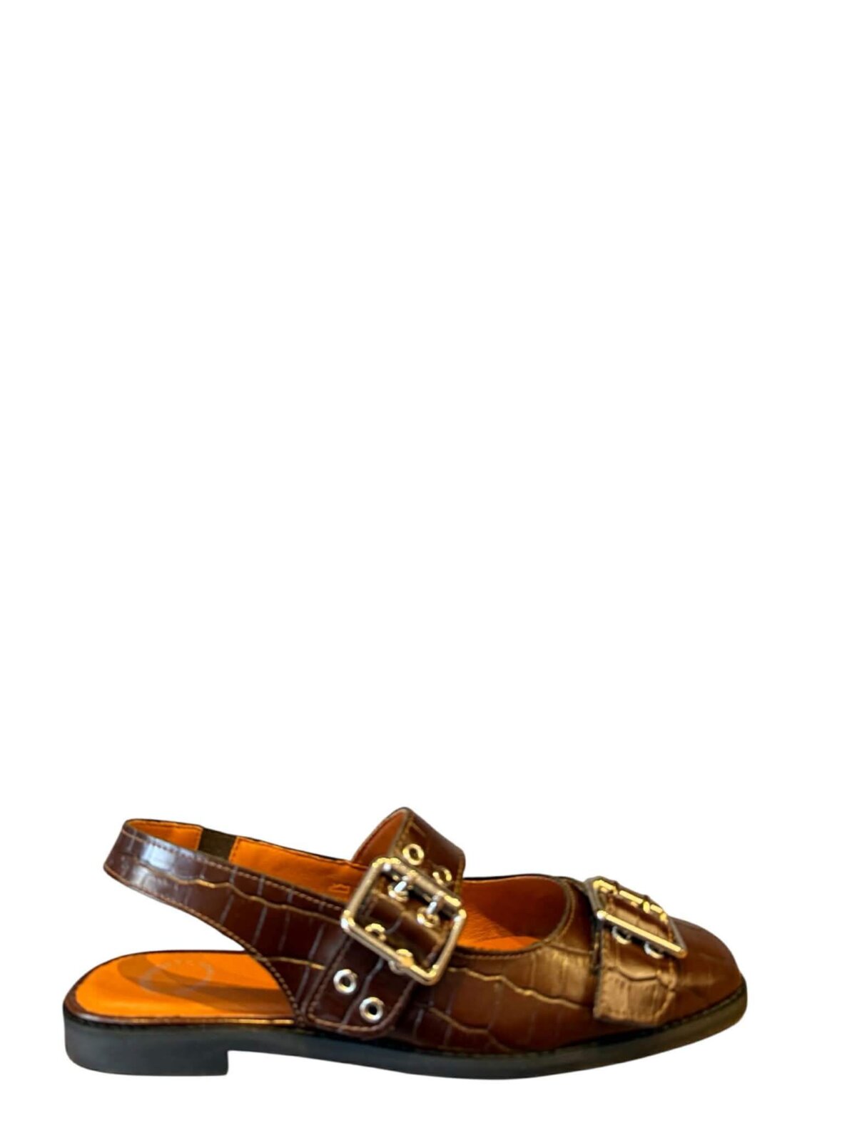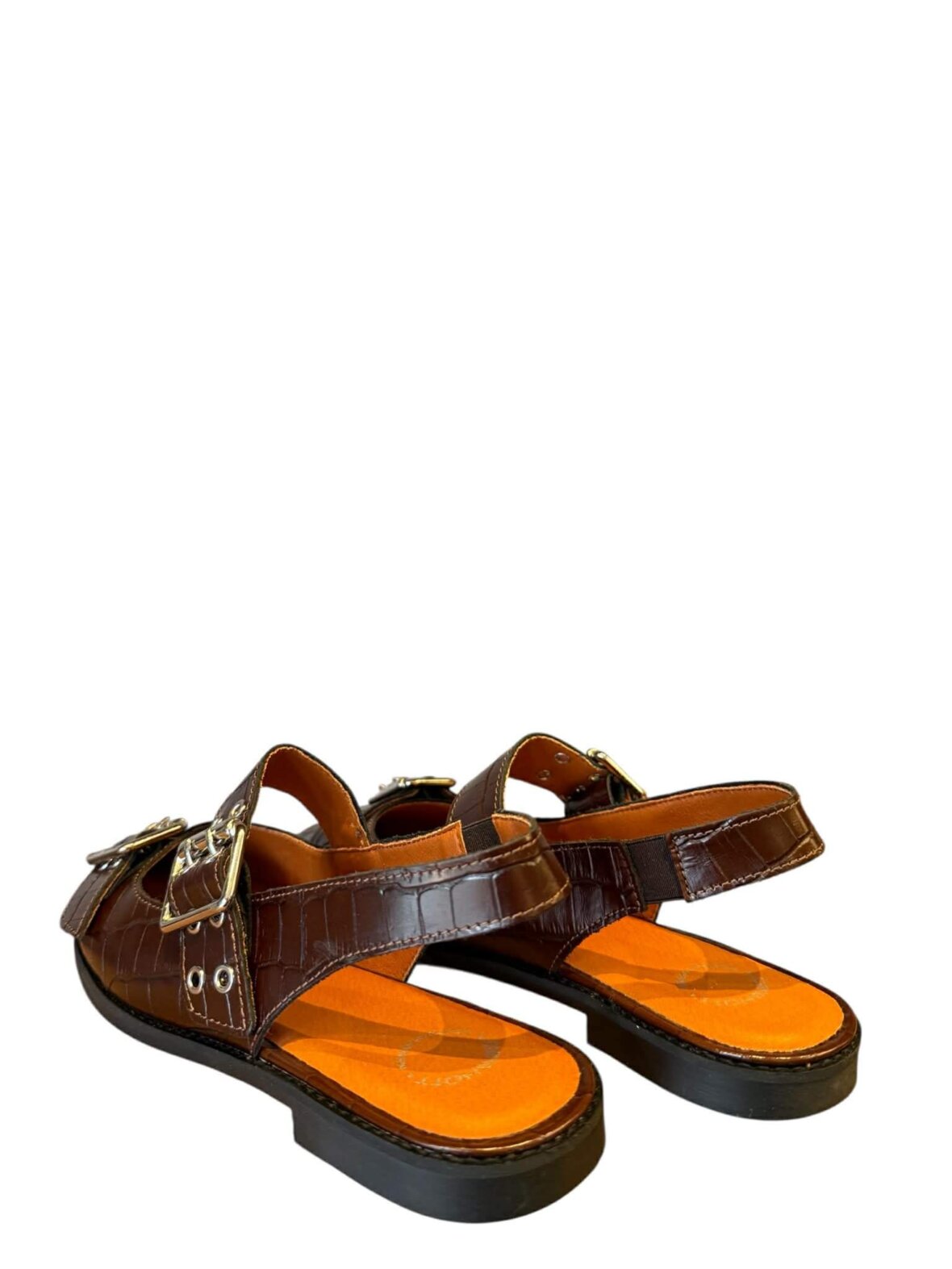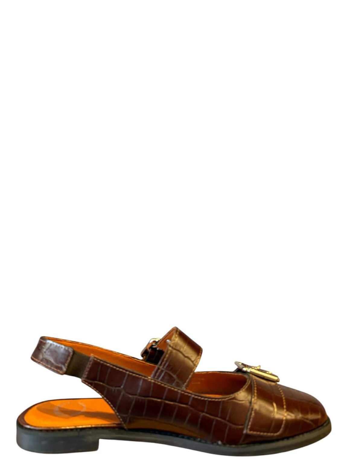 Flot sandal fra Ca Shott i brun croco skind, foret med skind. Rem med spænde over vristen der kan justeres.