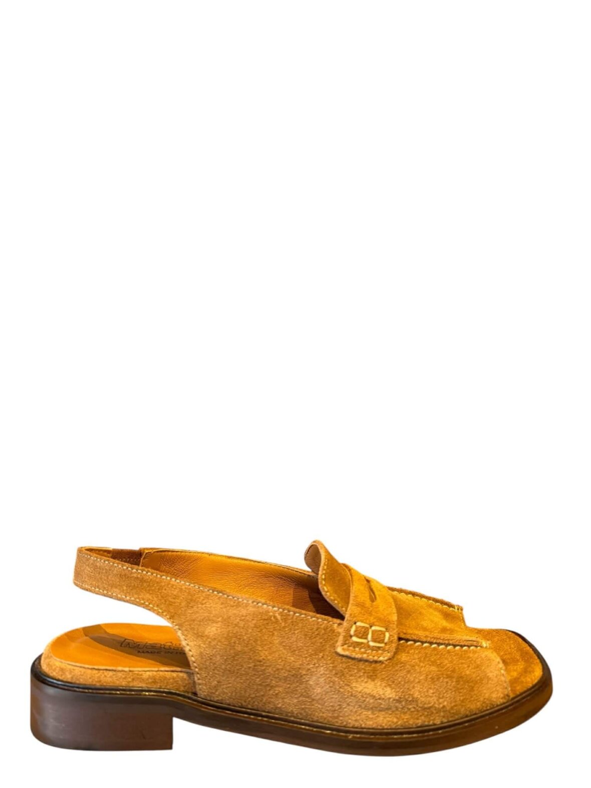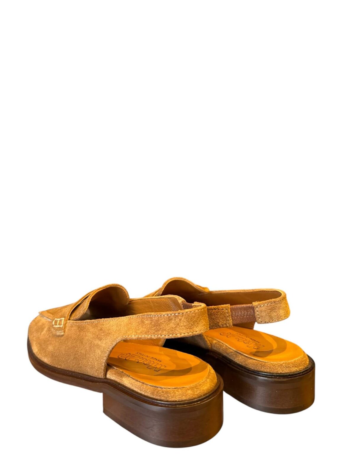 Smart sandal fra MAT:20 i cognac farvet ruskind, foret med skind.