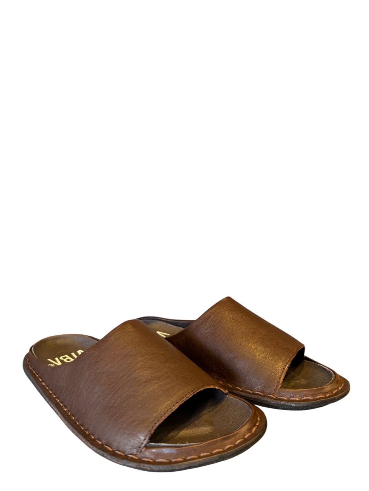 Smart tøffel fra VIBA i mørk brun skind, foret med skind.