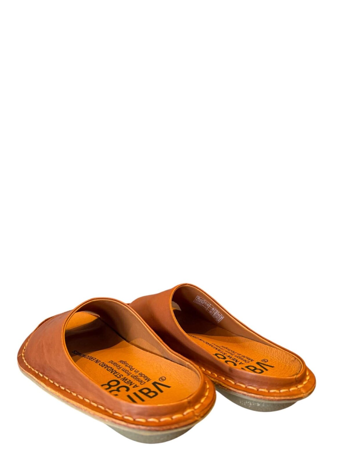 Smart tøffel fra VIBA i cognac farvet skind, foret med skind.