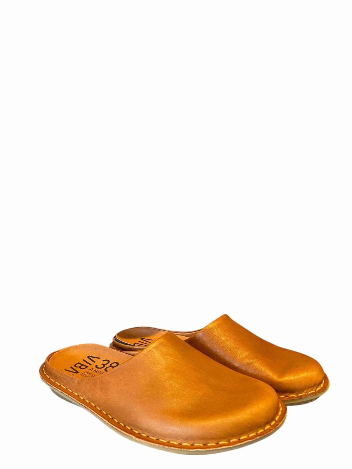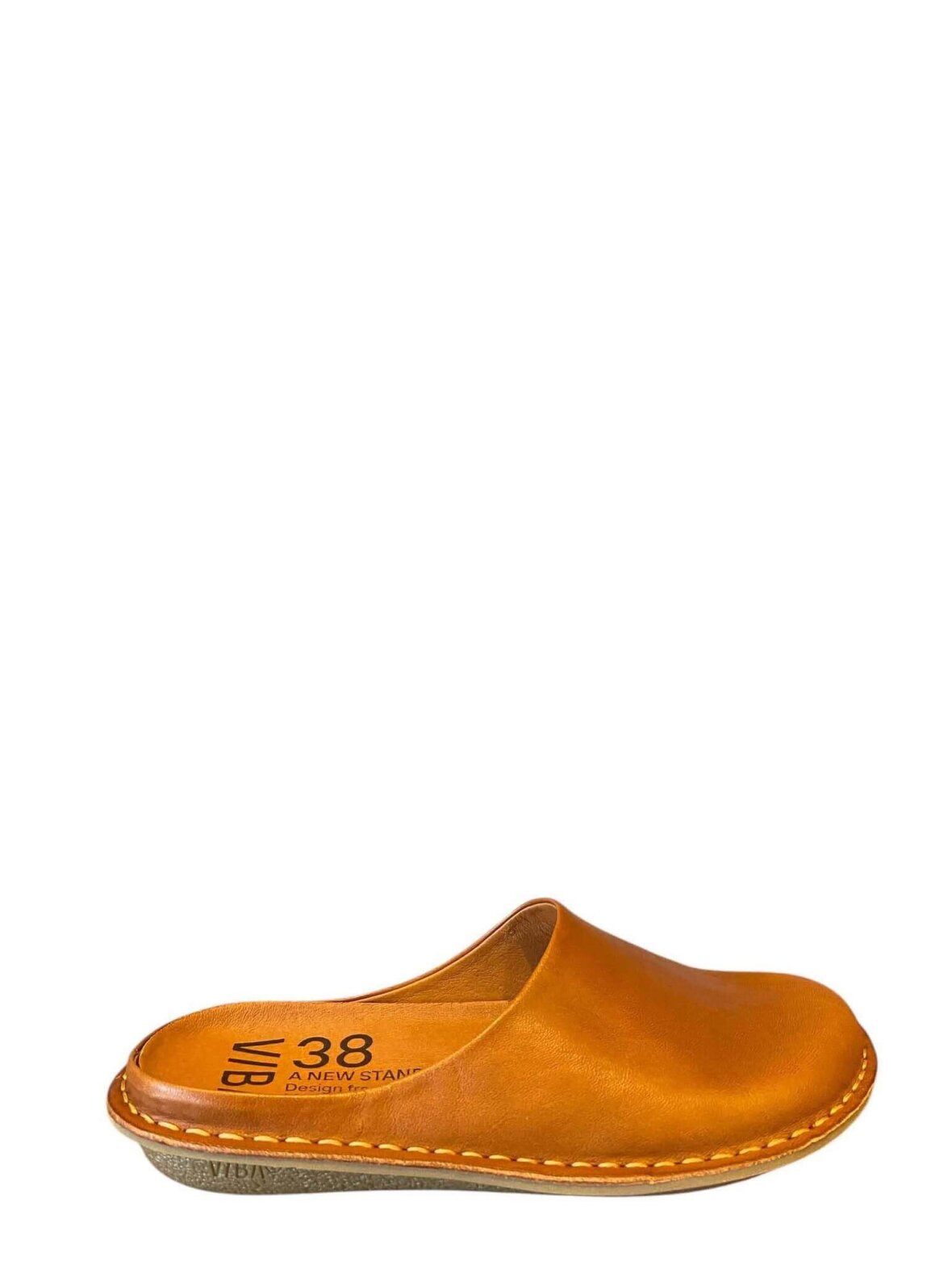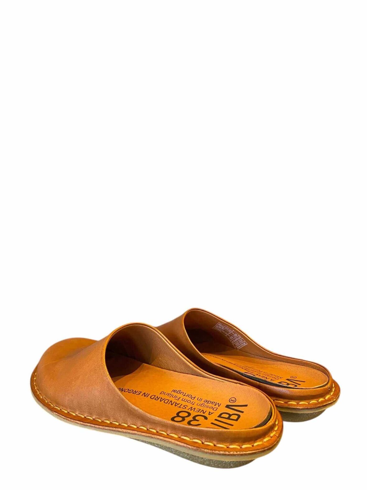 Smart tøffel fra VIBA i cognac farvet skind, foret med skind. Lukket tå.