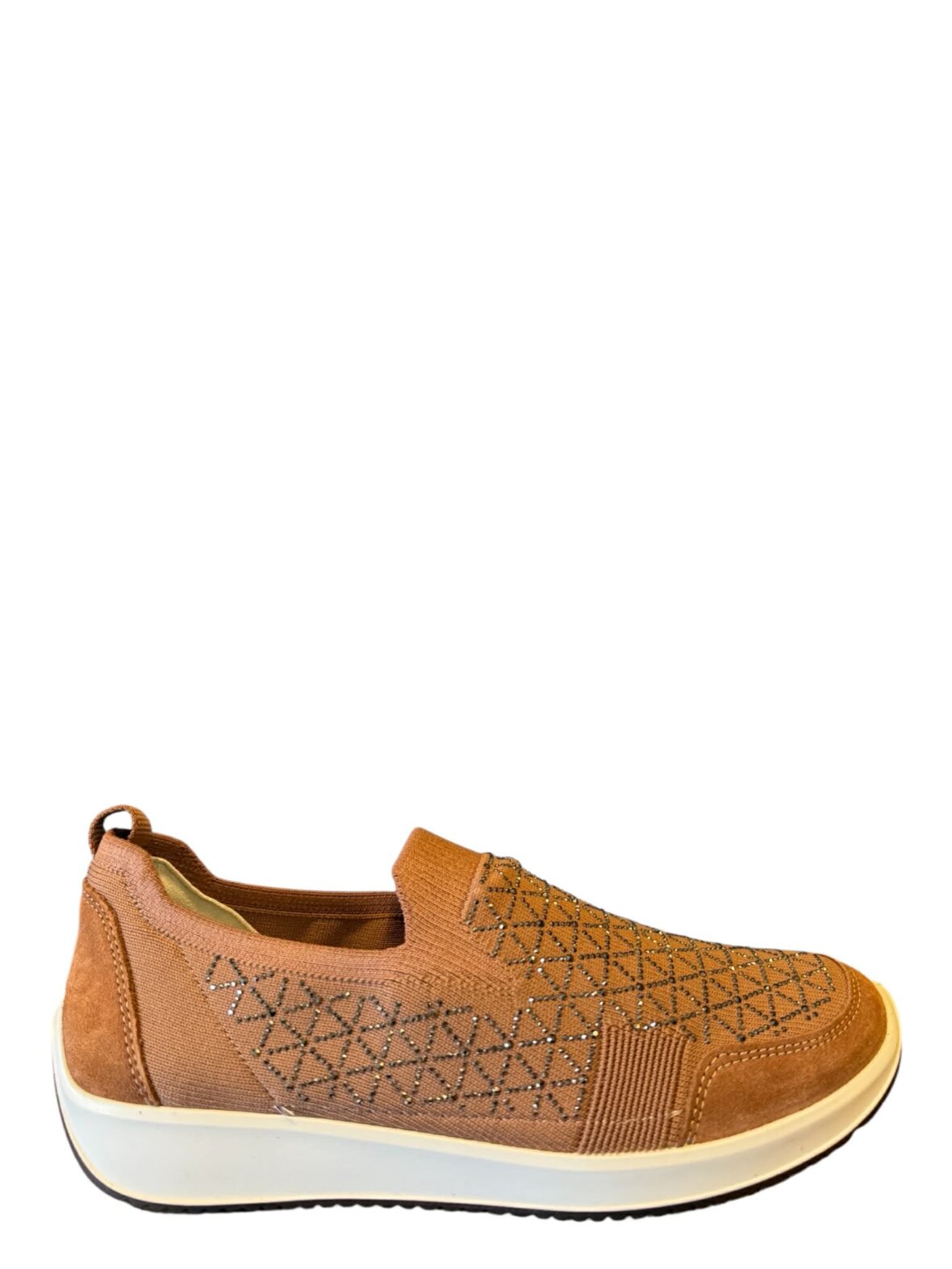 Sneakers fra ara i farven mousse i tekstil. Lige til at hoppe. Dekorative mørke sten.