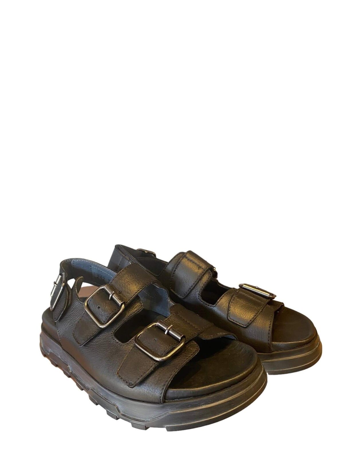 Smart sandal fra Lofina i sort olieret blødt skind. Justerbare stropper og hælrem med minimalistiske spænder. Har en kraftig sål med en komfortabel fodseng beklædt med ruskind.