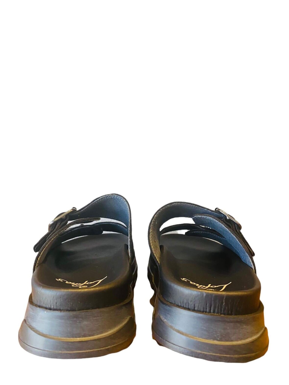Smart sandal fra Lofina i sort skind. Justerbare stropper med minimalistiske spænder. Har en kraftig sål med en komfortabel fodseng beklædt med ruskind.