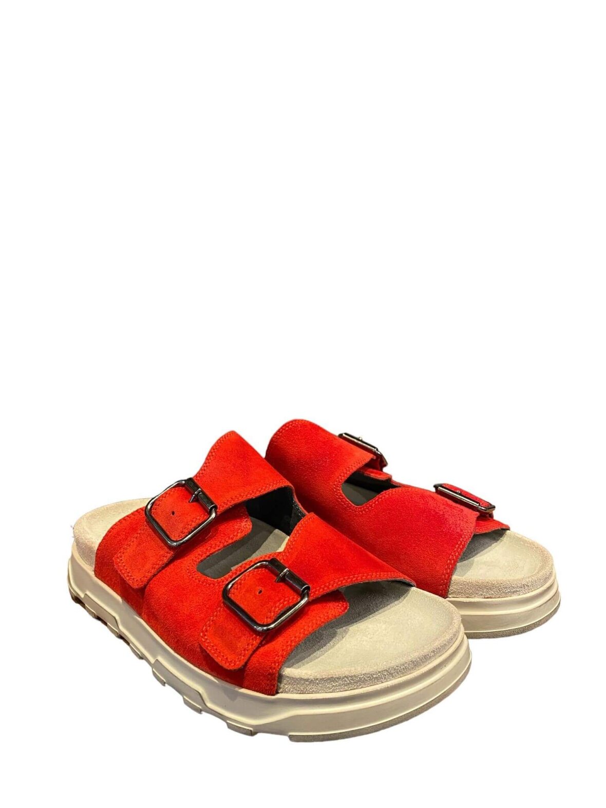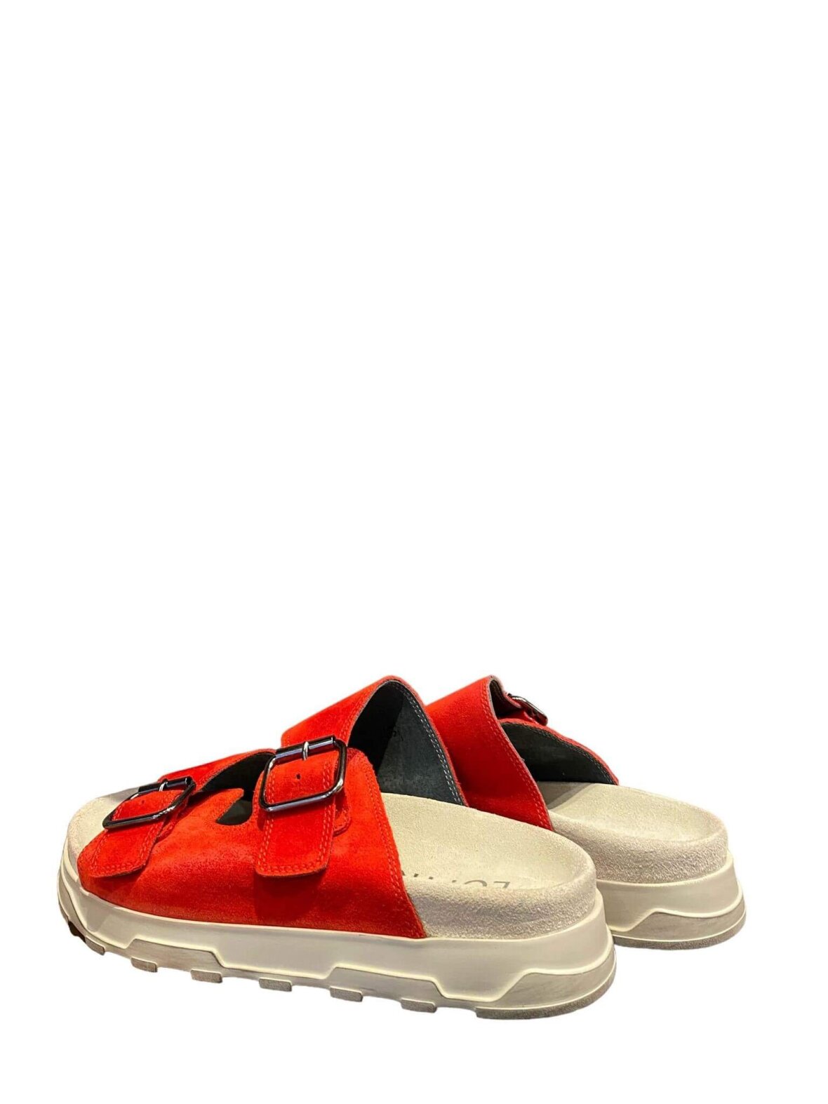 Smart sandal/tøffel fra Lofina i en blød rød ruskind. Justerbare stropper med minimalistiske spænder. Har en kraftig sål med en komfortabel fodseng beklædt med ruskind.