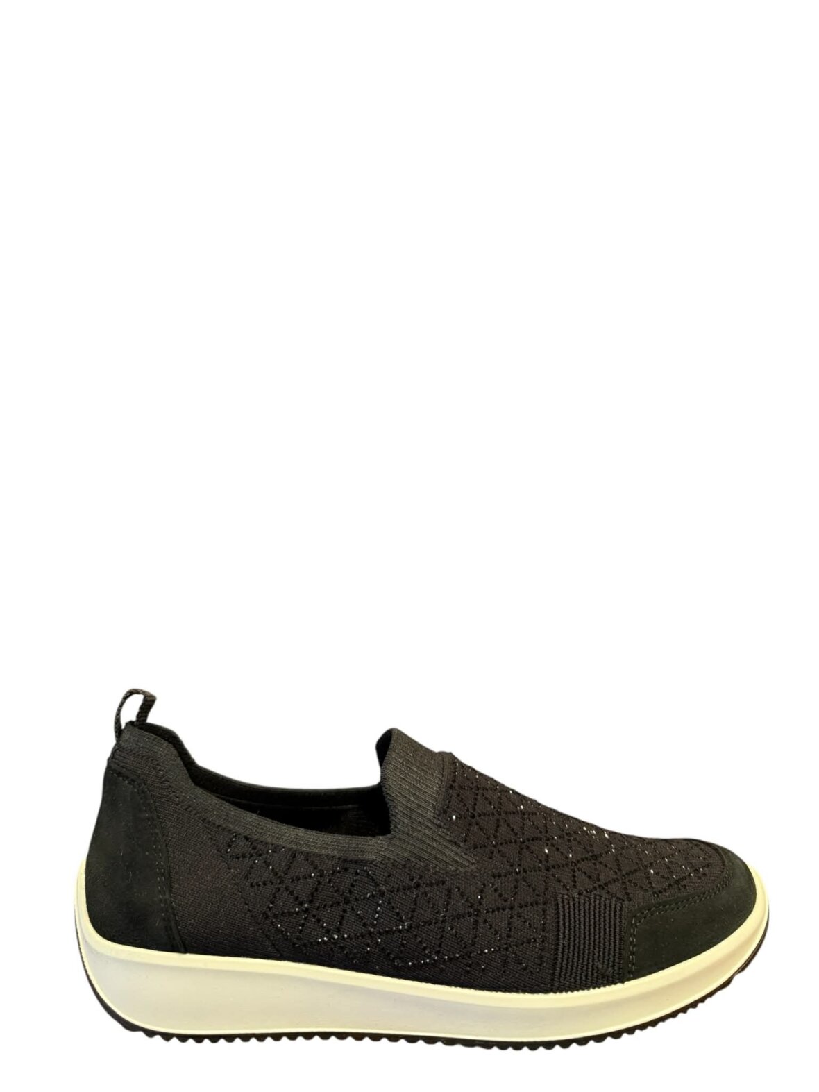 Sneakers fra ara i sort i tekstil. Lige til at hoppe i. Dekorative sorte sten.