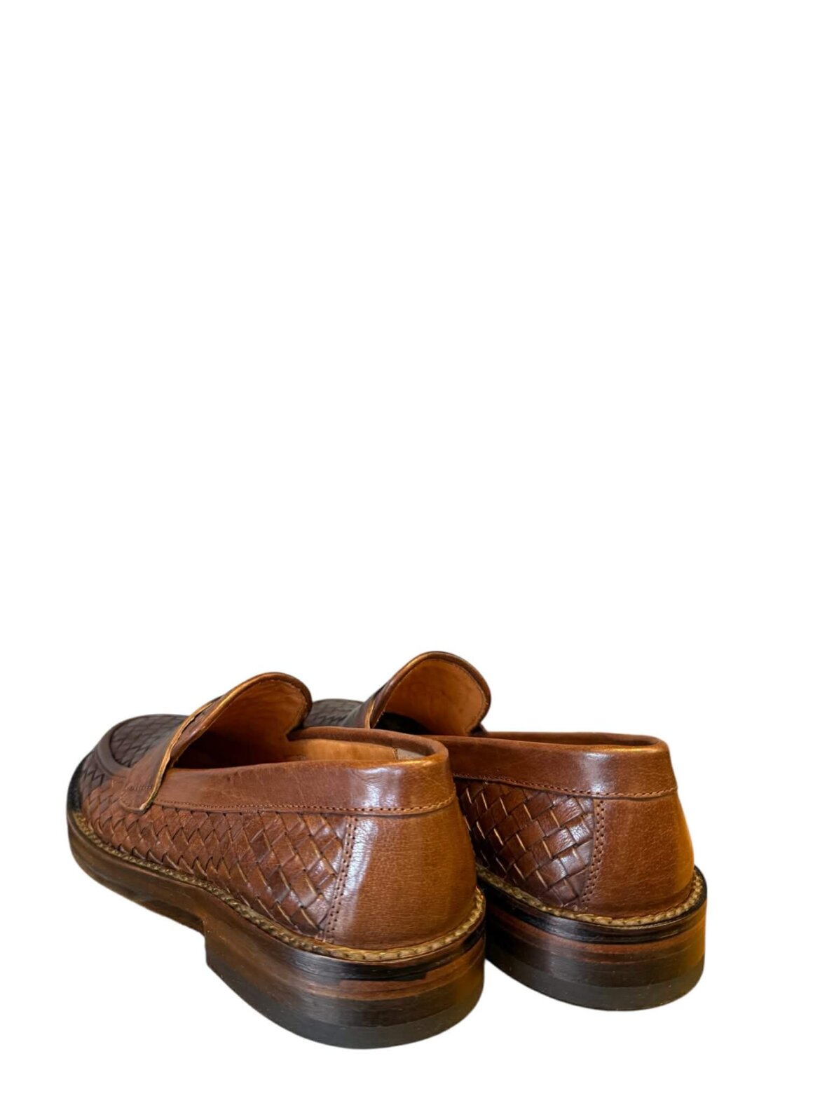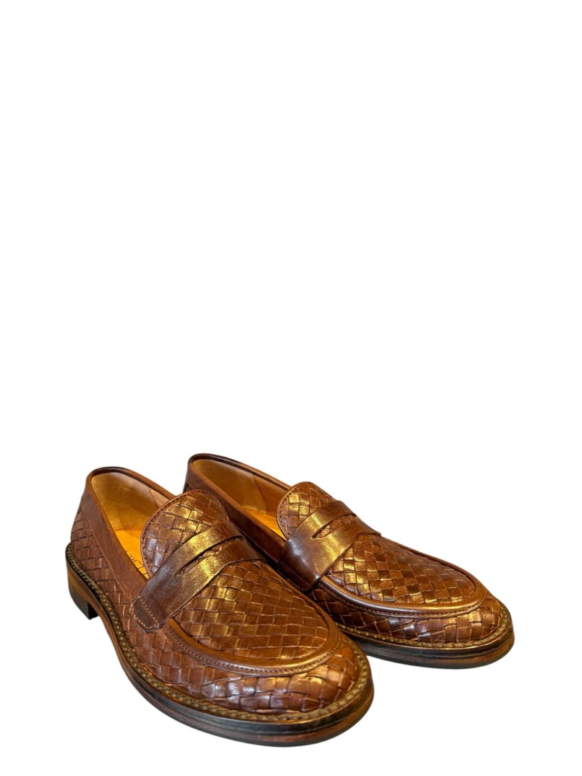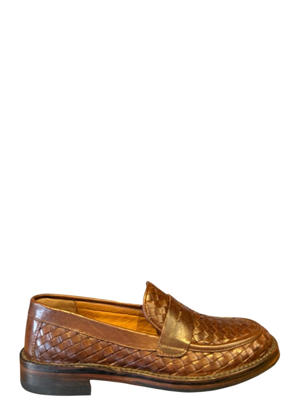 Loafers fra Bubetti i brun flettet skind. Foret med skind. Skindet kan variere i farve og struktur,