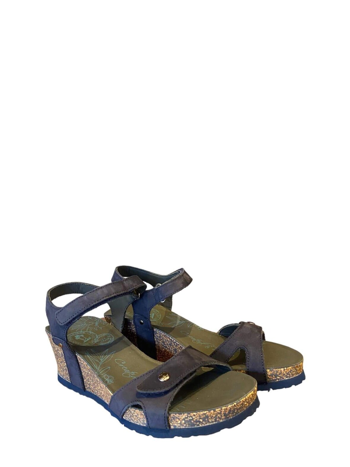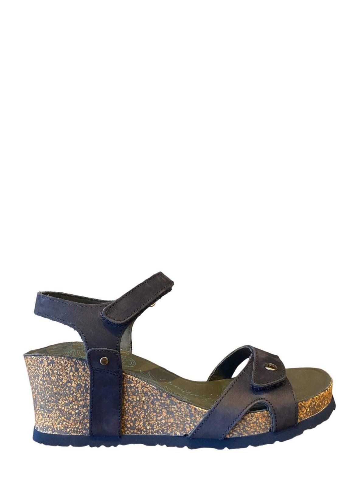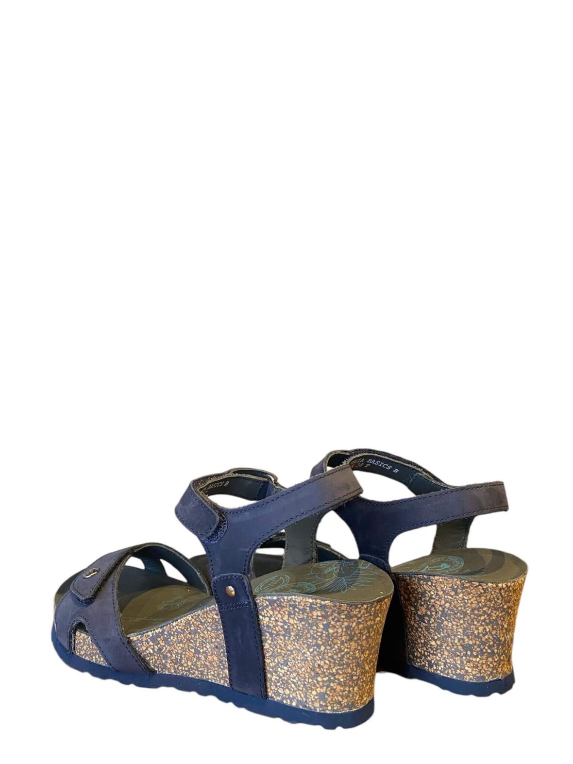 Panama Jack sandal i navy nubuck, foret med skind. - 6 cm kork kilehæl - 2 cm plateau. Lukkes med velcro 2 steder Dejlig blød indersål. Rigtig behagelige og komfortabel at have på.
