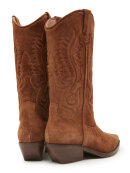 Rigtig flot cowboy-støvle fra VIA VAI i brunt/ammerato ruskind, foret med glat skind. Western hæl med en højde på 4,5 cm. Spids næse og træk løkker. Dekoreret med