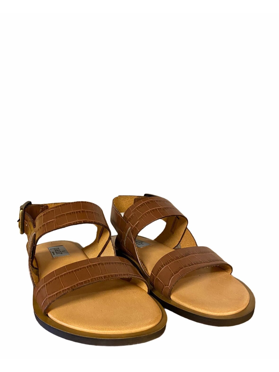 Klassisk sandal fra Apair i crocco præget skind i farven taupe. Bred rem over for og vrist. Hæl rem der lukkes med et spænde.