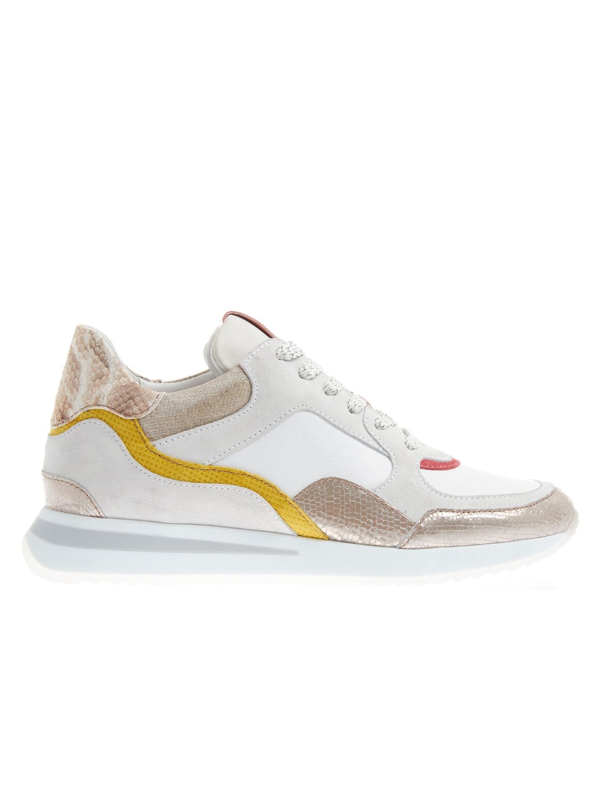 Smart sneakers fra Via Vai i hvidtskind, dekoreret med forskellige farver og materialer. Foret med skind.